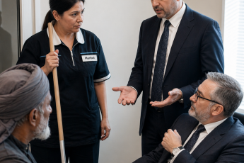 Наталья протирала подоконник, когда вдруг услышала, что переводчик нагло врёт. Молодой мужчина в пиджаке