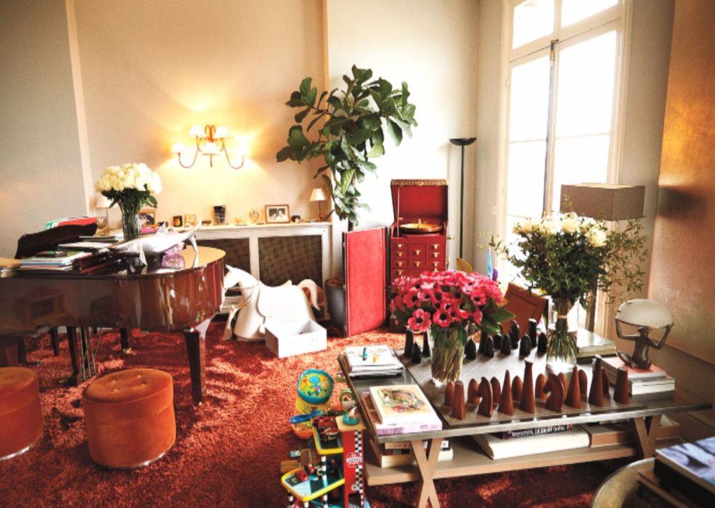 Стены украшают произведения современного искусства — среди них работы Такаси Мураками, Райана Макгинли и других авторов. В гостиной стоит старинный семейный рояль со своей историей. При этом обстановка не кажется похожей на музейную экспозицию: всё выглядит естественно и органично, как часть по-настоящему жилого и тёплого дома.