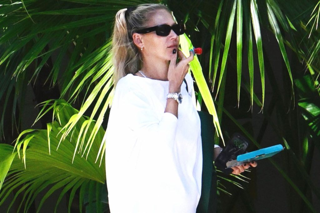 Новорождённого малыша спортсменка оставила с отцом и няней, а сама посвятила день троим старшим детям — восьмилетним близнецам Люси и Николасу, а также шестилетней Мэри. Для прогулки Курникова выбрала расслабленный и удобный образ: белый свободный джемпер, короткие чёрные шорты и светлые пляжные мюли. Завершили наряд тёмные солнцезащитные очки и вместительная сумка из кожи насыщенного изумрудного оттенка. После родов Анна быстро вернулась в форму и продемонстрировала стройную фигуру и подтянутые ноги.