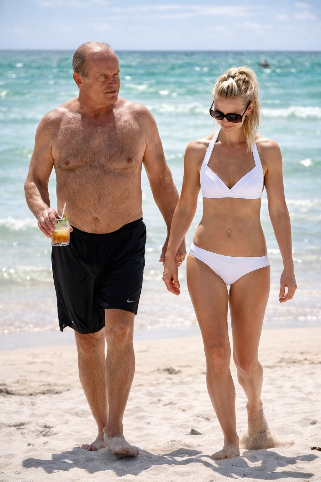 Во время солнечного отдыха в Майами Келси Грэммер и Кейти Уолш вновь доказали, что для по-настоящему влюблённых разница в возрасте не имеет решающего значения. Звезда сериала Frasier и его 34-летняя супруга выглядели на пляже очень гармонично: они гуляли вдоль берега, смеялись, плескаясь в волнах, и наслаждались лёгкой, беззаботной атмосферой вместе. Кейти привлекала внимание в белом бикини и, несмотря на то что после рождения их второго ребёнка прошёл всего год, выглядела великолепно — стройной, подтянутой и буквально сияющей.
